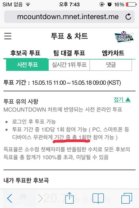 +추가추가)누가 자꾸 엠카 한번만 투표가능하데?