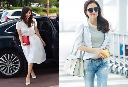 올 화이트룩에 김희애랑 똑같은 가방 들고 나왔는데