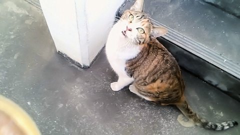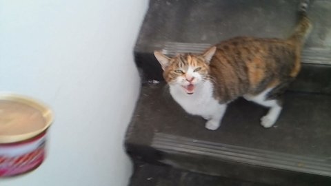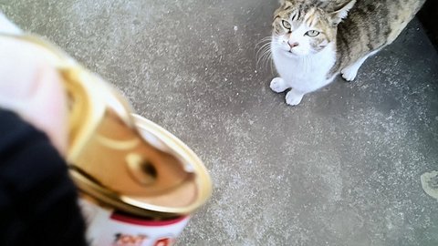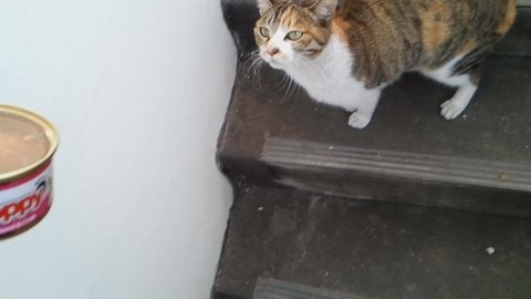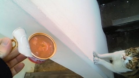 캔사료를 너무 좋아하는 길고양이 람쥐...