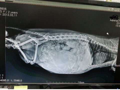 시간은 흘러.. 출산 예정일이 다가왔고 5월 7일에 최종 마릿수를 확인하기 위해 엑스레이 촬영을 위해 방문하였습니다. 엑스레이 결과는 3마리 확정이였고 아직 골화가 덜된상태이다라고 이야기하면서 예정일이 11일이기 때문에 그때까지 안낳으면 13일 엑스레이 촬영해보고 제왕절개 해야할수도 있다고 또 이야기 꺼내더라구요..
