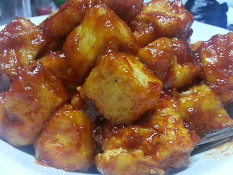 두부를 튀겨서 강정소스도 직접! 만들었습니당