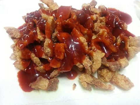 돼지고기 튀김? 이건 간식으로 먹었어요! 소스는 양념치킨 소스처럼 만든거예요