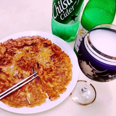 비오는날 해먹은 김치부침개! 그리고 괜히 와인잔에 담은 막+사 ㅎㅎㅎㅎㅎ