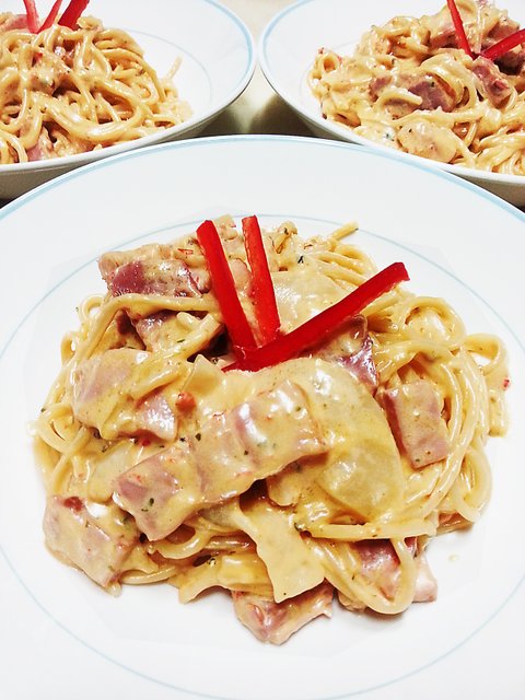 베이컨 파프리카 페스토 크림 스파게팈ㅋㅋㅋㅋ