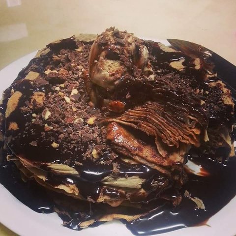 마지막 유행하던 크레이프케익이요! 초코시럽 마구마구 뿌린건데 이거 만드는데 몇시간 걸려서 다신 안한다던....ㅎㅎㅎ