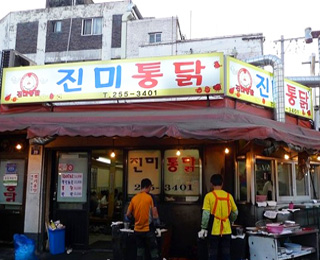 진미통닭 : 가장 인기 있는 곳으로 후라이드와 양념 등으로 메뉴가 나뉜다.