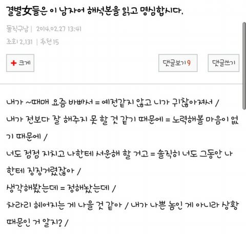 지쳤다는 말로 미련만 남기고 떠난 남자의 말..