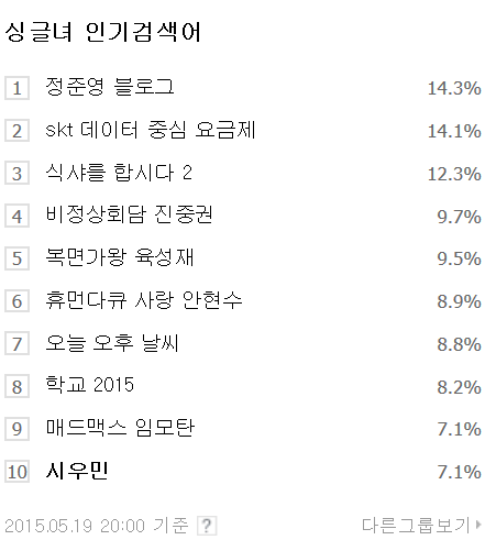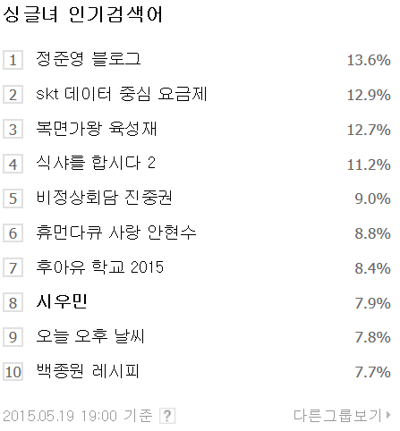 8시에 또 오름 오늘은 싱글녀들이 민석이 검색하는 날!!! ㅋㅋ