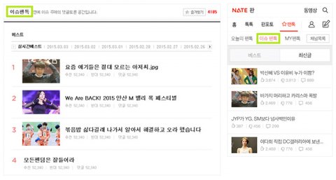 연예 이슈 주제의 댓글토론 공간으로 팬톡 메뉴의 하위 메뉴로 이슈팬톡이라는 공간이 신설되었어요. 다채롭고 흥미로운 주제의 글들을 직접 작성해보시고 열띤 댓글 토론을 통해 다른 팬들의 이야기도 들어볼 수 있답니다.