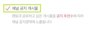 다른 팬들과 특별히 공유하고 싶은 글이나 사진이 있으시죠? 이제부터 '채널 공지 설정' 기능을 활용하시면 됩니다.