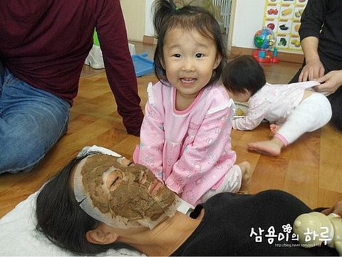 여자들은 천연팩을 하고! 남자들은 애기들 돌보고 ㅋㅋㅋㅋ