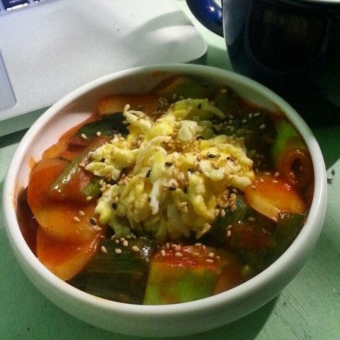 떡볶이가 땡겨서 떡국떡으로 만들어 본 떡볶이예요.