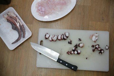 소래포구에서 산 문어5천원어치 + 회 5천원어치로 저렴하게 초밥만들었습니다.