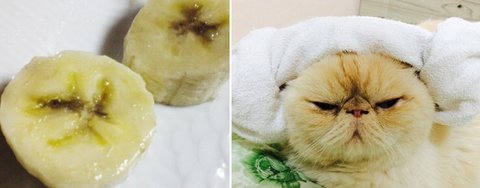 얼마전 올린 고슨상이바의 게시물댓글 중 고양이가 아니라 바나난줄 알고 들어왔다란 글을 보았습니다.그것이 사실인가 확인차 바나나와 비교해보니 놀라운 싱크로율을 발견하고 말았습니다.