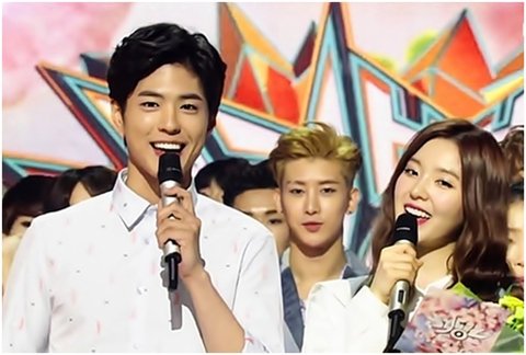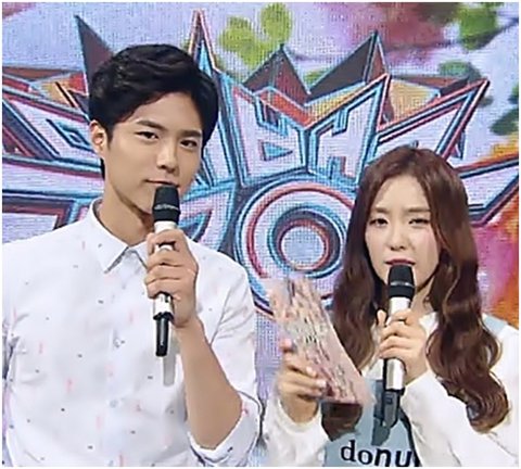 레벨 아이린과 음악프로그램의 새 MC가 된 박보검.
