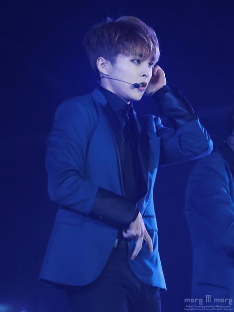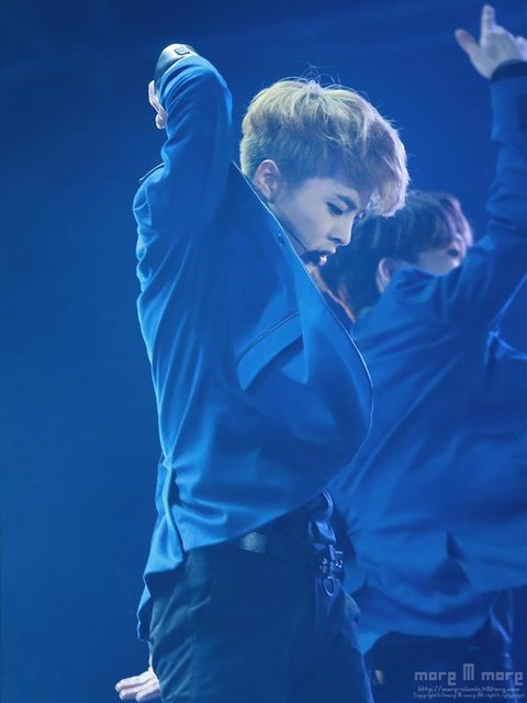 오늘 시우민 파란색의상에 상투머리 >.<