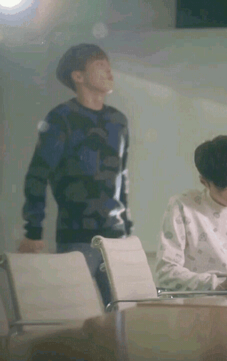 오늘 시우민 파란색의상에 상투머리 >.<