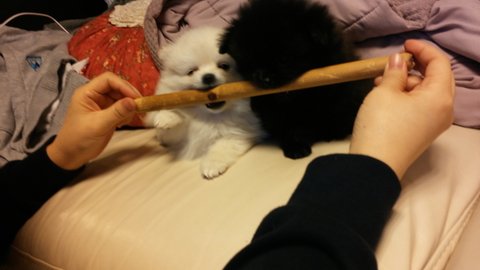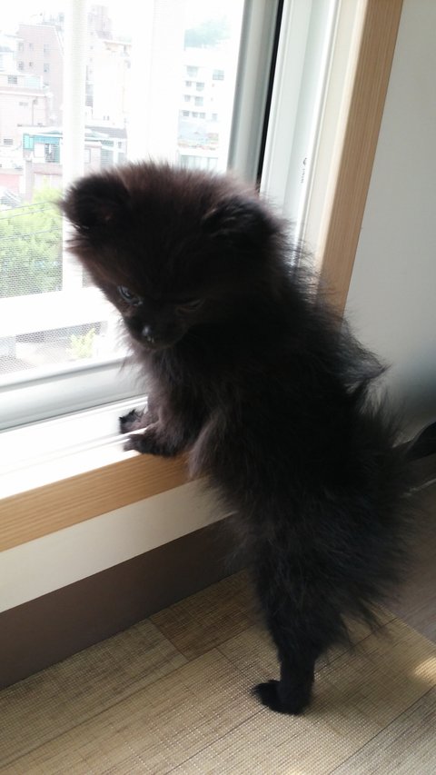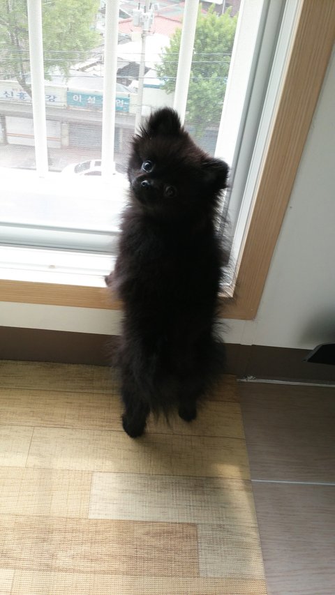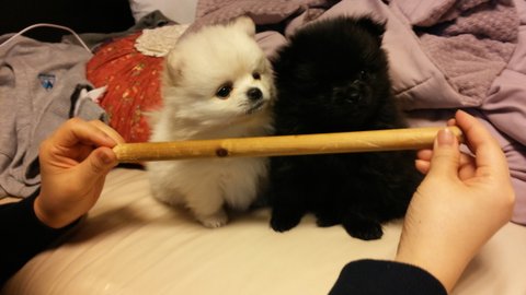 시누가 흰색암놈 포메와 검정숫놈 포메를 기르는데
