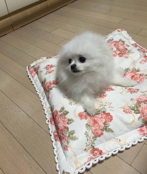 방석을 꺼내놨더니 자기 자리인마냥 앉아있어요