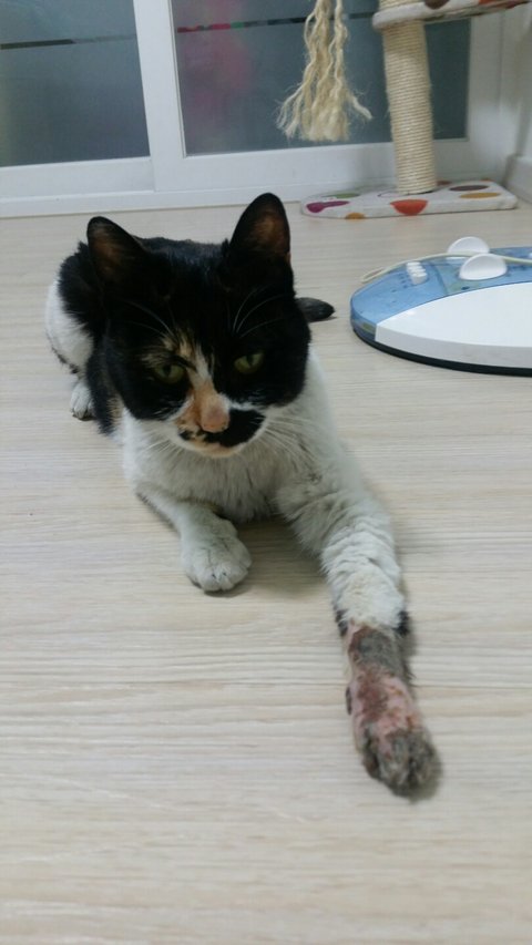 다리 썩는게 진행이 안되고 어미냥이 아파하지는 않기 때문에 저상태로 지내는게 좋다시네요