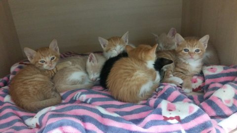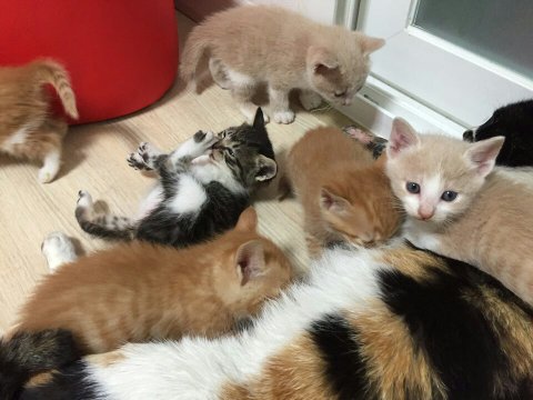 박스에 버려진 어미냥 난이와 새끼 일곱마리들 ..