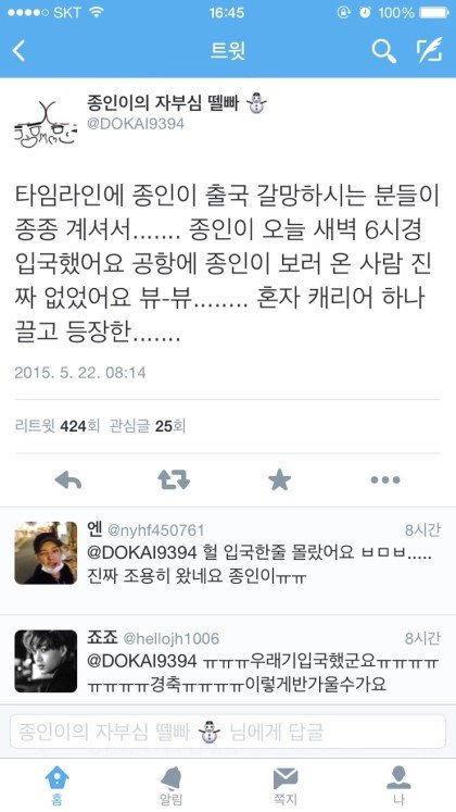 이거 진짜야? 헐 나 전혀 모르고 있었어 오늘 좀전에 인터넷 접속했는데 하루종일 너무 정신없이 바빠서 그런데 입국 사진 한장 없네 진짜 아무도 몰랐나봐 조용히 입국했나보네 오늘쯤 올거같더니