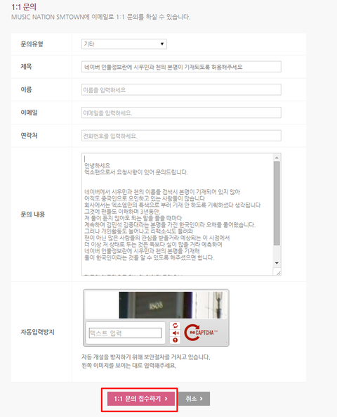 안녕!위에 웅녀의 글을 보고 별거없지만 헷갈리거나 시간이 없는 웅녀들을 위해 만들었어종대랑 민석이랑 같이 본명이 나왔음해서 쓴 글인데 복붙하거나 새로 글을쓰거나 사견을 덧붙이거나 원하는대로 SM에 문의해줬으면 좋겠어이제 민석이 영화도 시작하는고 실검도 자주올라올텐데 더이상 중국인이라 오해받는건 사양이야ㅠSM이 수락해야 네이버측에서 수정해준다 하니 1순위로 SM에 문의해주고하는김에 네이버에도 요청해주면 좋을거같아! 그럼 다들 힘내자!!