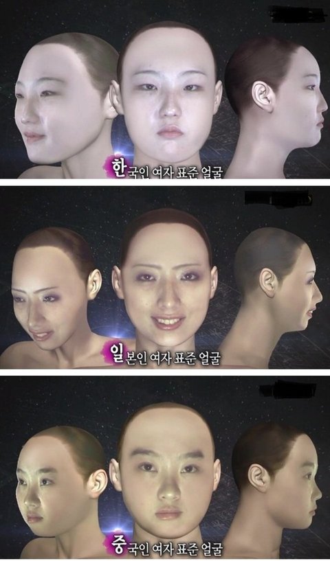한국 중국 일본 여자들 평균외모