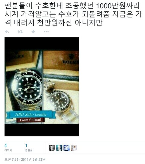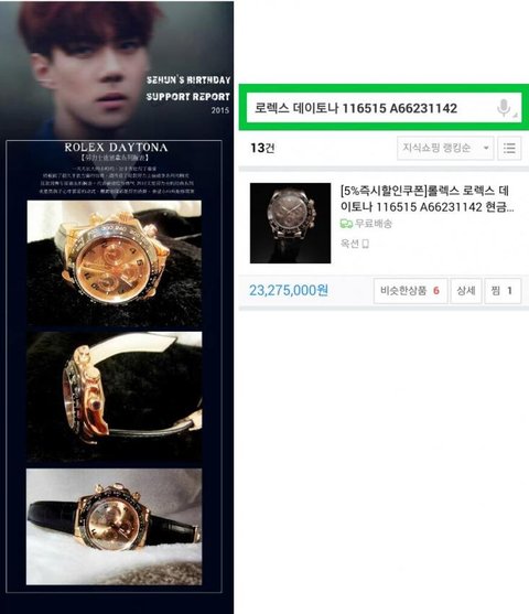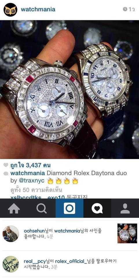 이걸 보면 자기도 좀 당황하고 팬들에게 조금은 미안한 마음이 있어서 비공개 계정으로 하든지 해야 하는데, 찬열은 세훈이 롤렉스 조공시건을 보고도 생각도 없이 공개계정으로 롤렉스 계정 팔로함. 팬들을 그냥 돈줄로 생각하는지 어떤지는 몰라도 남들이나 내가 봤을때도 팬에 대함 최소한의 예의도 없고 생각도 없어보임