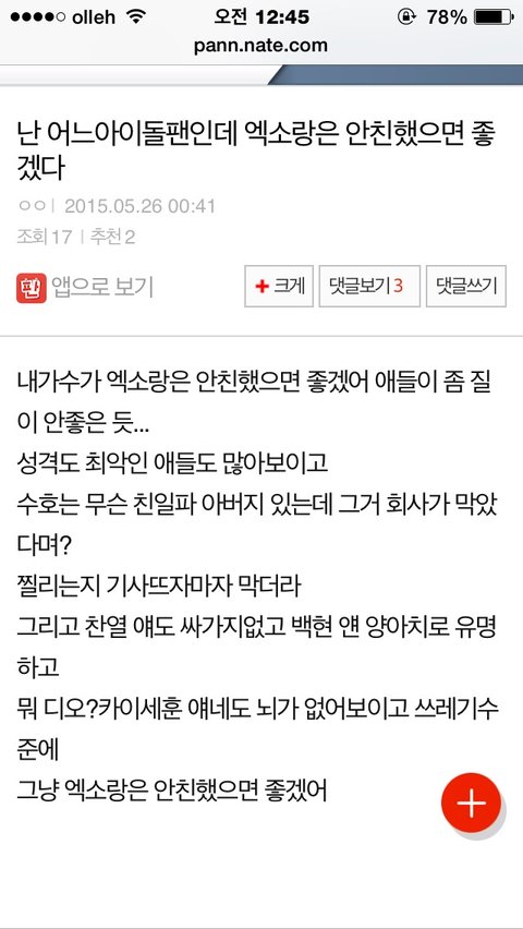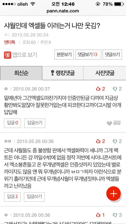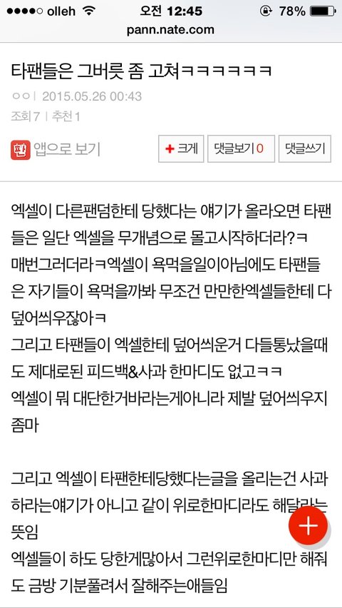 더 까일대도 없지만 까일까봐 무서워서 말도 함부로 못하겠음 진짜ㅋㅋㅋㅋ 근데 하나만 묻자ㅋㅋㅋ 너네 엑셀한테 왜그래? 이유가뭐야? 보나마나 얘네가 지금까지 한 짓이있는데 부메랑 맞는거라고 하려고?