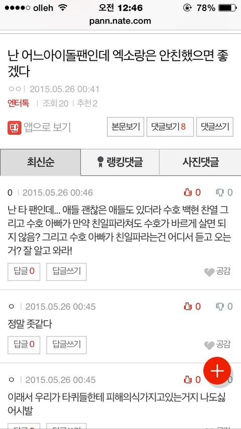 쉴드댓글이 몇개 있었음ㅠㅠㅠㅠㅠㅠㅠ