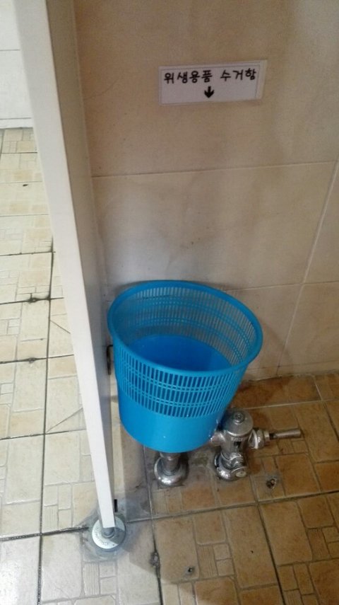 여자화장실에 위생용품 수거함(생리대 수거함) 을 설치 하되 기존의 쓰레기통을 재활용하여 위생용품 수거함 이라 표기 하여도 무방,,,, 하다,,,,, 라고 문서 하단에 사족을 달자....