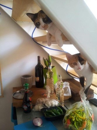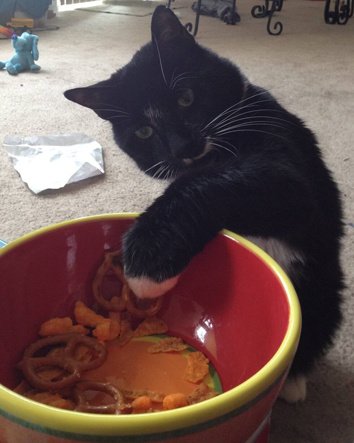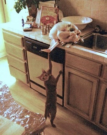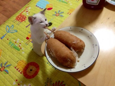 음식 훔치는 고양이와 동물들