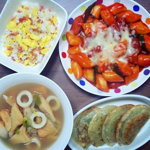 베이컨달걀볶음밥, 모듬어묵탕, 군만두, 치즈떡볶이!!