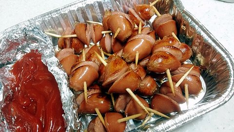 그냥 먼저 비엔나부터 굽고 구운비엔나를 반으로 갈라서 이쑤시개 꼽는게 더 이뻐요!ㅎㅎ