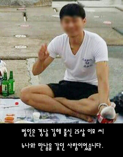 범인은 김해 출신 25살 이모 씨였습니다. 그는 약 1년 전 누나와 사제지간으로 만났습니다. 다정한 면모는 그가 쓴 탈이었습니다. 다툼 이 시작되면 폭력으로 끝을 맺었습니다. 온몸 가득한 시퍼런 멍, 결 국 누나는 그에게 이별을 통보했습니다. 그리고 그는 누나의 목을 졸라 살해했습니다. 억대 연봉으로 H 회사와 계약해 가족들에게 깜짝 선물을 준비하겠다고 말한 직후였습니다.