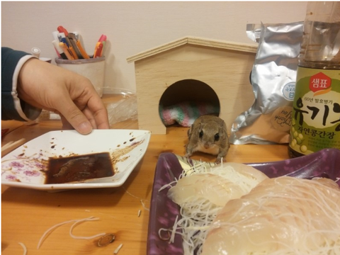 광어회 옆의 하늘다람쥐입니당~