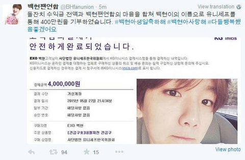백현팬연합 기부했대