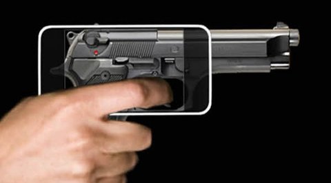 아이폰으로 총을 쏘는 시늉을 하고 도망갔다.