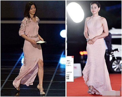 이하늬 역시 전지현과 같은 핑크빛 드레스를 선택했는데