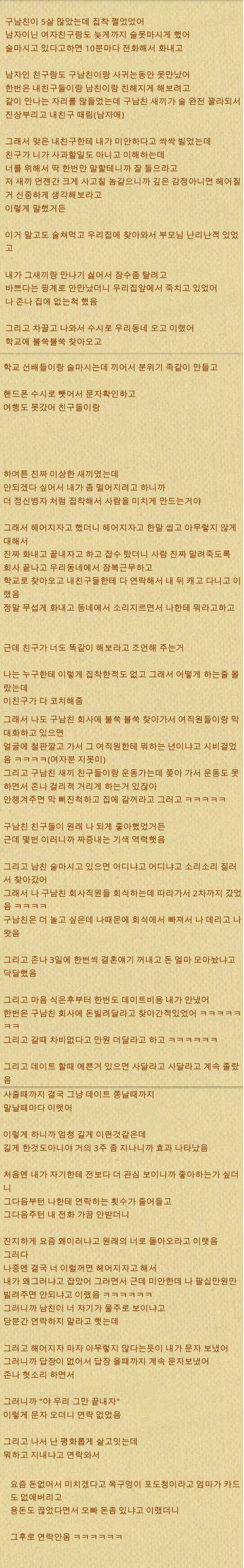 남자친구의 쓰레기같은 인성과 점점심해지는 집착에 점점마음이 식어 헤어지자고 말했습니다.