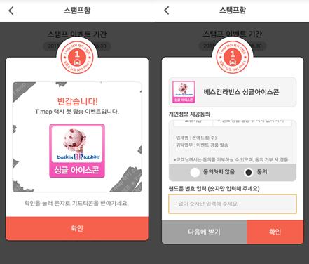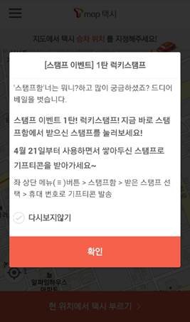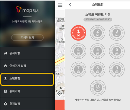 T맵택시를 이용하면 자동으로 받게되는 스탬프!