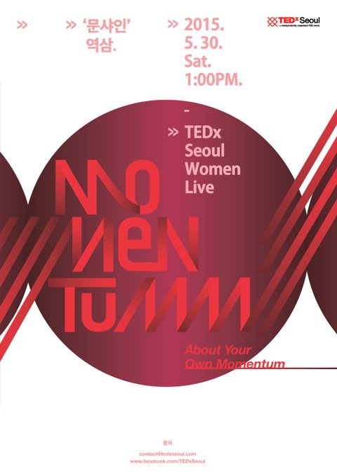 TEDxSeoulWomen, also based on the same subject, Momentum, also endeavors to deliver an inspirational message through the stories of women who lead their lives in Korea.