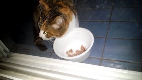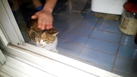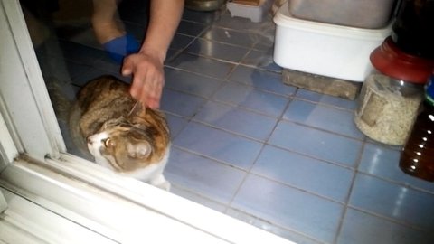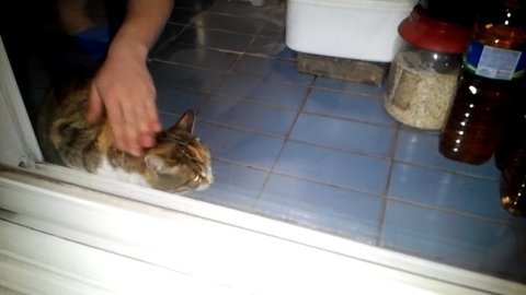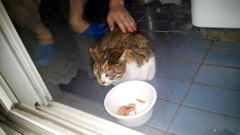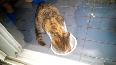 처음으로 우리집 베란다에 길고양이 람쥐를 데려왔습니다.