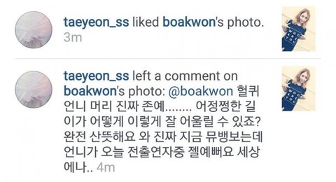 보아 인스타 사진 좋아요 누르고 댓글을 남긴 태연ㅋㅋㅋㅋㅋ 언니 머리 진짜 존예랰ㅋㅋㅋㅋㅋ
