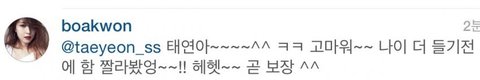 이에 보아가 태연한테 답글을 달아줌 ㅎㅎ 훈훈한 선후배 사이~~