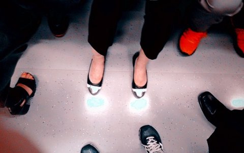 "붐비는 지하철 안에서 그렇게 다리 뻗고 있으면 안밟히겠어요!!"