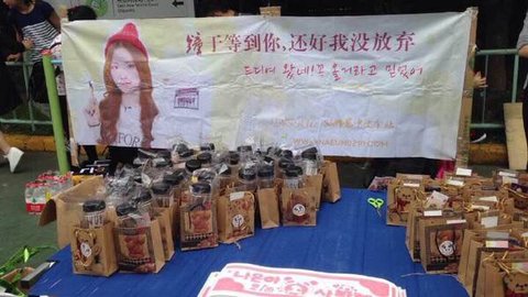 손나은 팬들이 손나은팬에서 선물을 주는 장면