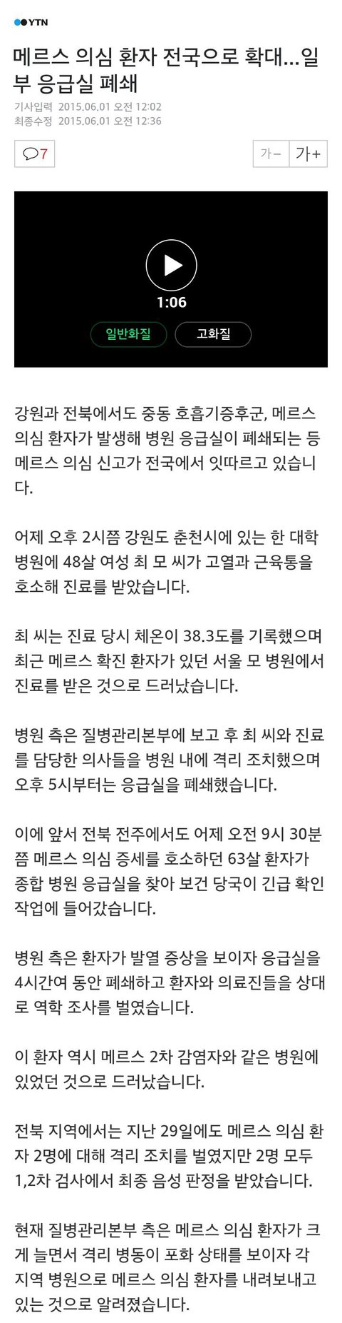강원도- 메르스환자가 발생한 서울(!) 병원에서 진료받은적 있음- 춘천의 한 병원에서 진료받음(?)