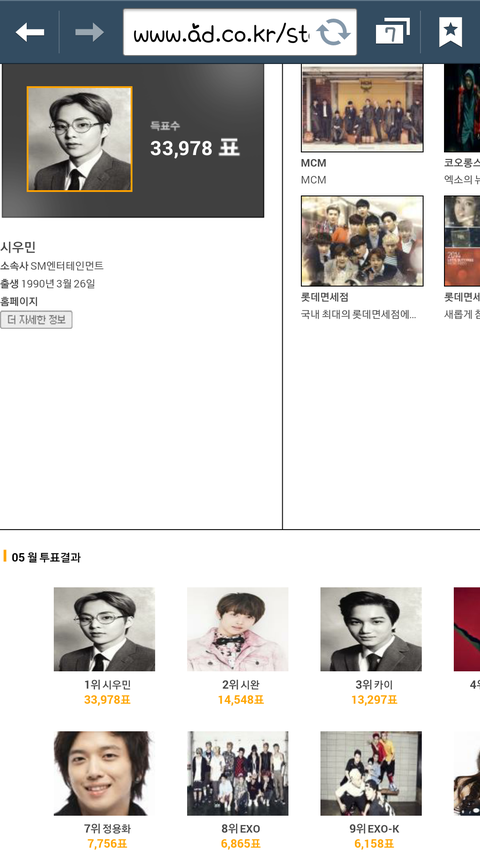 시우민 5월 광고모델 순위 1위!!^^ (진짜 1위)